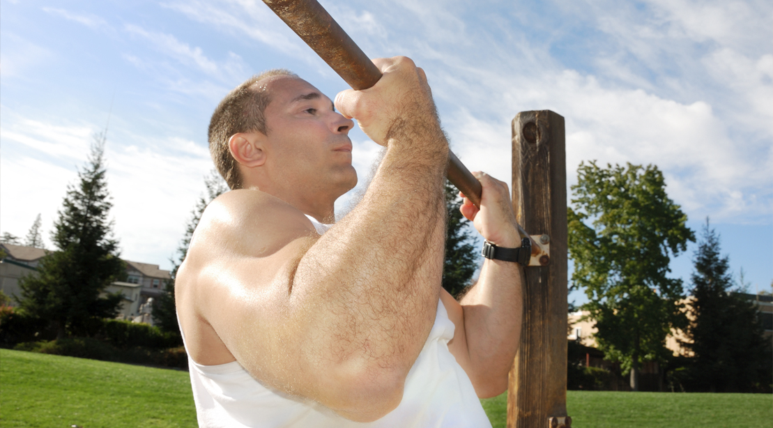 2. The easiest way to use virtually all your bodyweight as resistance is to pull or push while suspended, as with a pullup or dip.